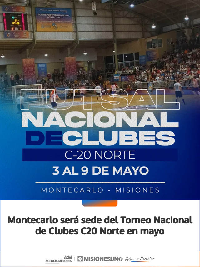 AGENCIA MISIONES.UNO | La ciudad de Montecarlo se prepara para recibir una de las citas deportivas más importantes del calendario nacional con la disputa del Torneo Nacional de Clubes C20 Norte. El evento tendrá lugar del 3 al 9 de mayo, consolidando a la localidad como un epicentro para el desarrollo del deporte juvenil en la región.